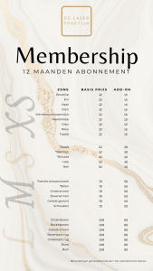 €109,- (onderbenen/grootste gewenste zone) + €30,- (add-on oksels) + €30,- (add-on bikinilijn) = abonnement van €169,- per maand